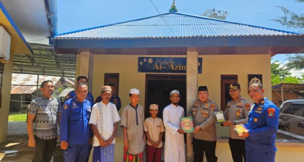 Polres Belitung Timur-Hubungan Masyarakat, Manggar. Kapolres Belitung Timur AKBP Indra Feri Dalimunthe, S.H., S.I.K., M.H. didampingi Wakapolres Belitung Timur Kompol Deddy Nuary, S.H., S.I.K., dan Kasat Polairud Polres Belitung Timur AKP Chandra Wijaya, S.H., M.H. bagikan Al-Qur’an, Iqro, tuntunan shalat di Mushola Al-Azim Sat Polairud Polres Belitung Timur, Kamis(21/08/2025).