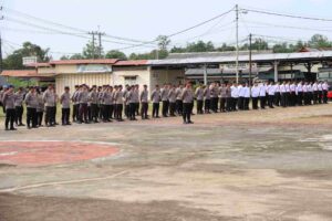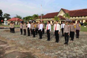 Polres Belitung Timur, Hubungan Masyarakat – Manggar, Kapolres Belitung Timur AKBP Indra Feri Dalimunthe, S.H., S.I.K., M.H. mengambil apel pimpinan yang dilaksanakan dihalaman depan Polres Belitung Timur. Senin (30/12/2024)Pagi.