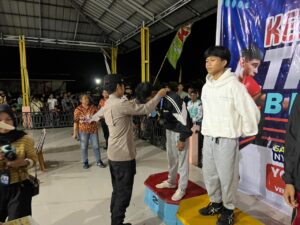 Iptu Sandi Iriawan, S.Tr.K., M.H. hadir mewakili Kapolres Belitung Timur AKBP Indra Feri Dalimunthe, S.H., S.I.K., M.H., M.M. dalam acara penutupan kejuaraan yang telah berlangsung sengit selama beberapa hari tersebut.