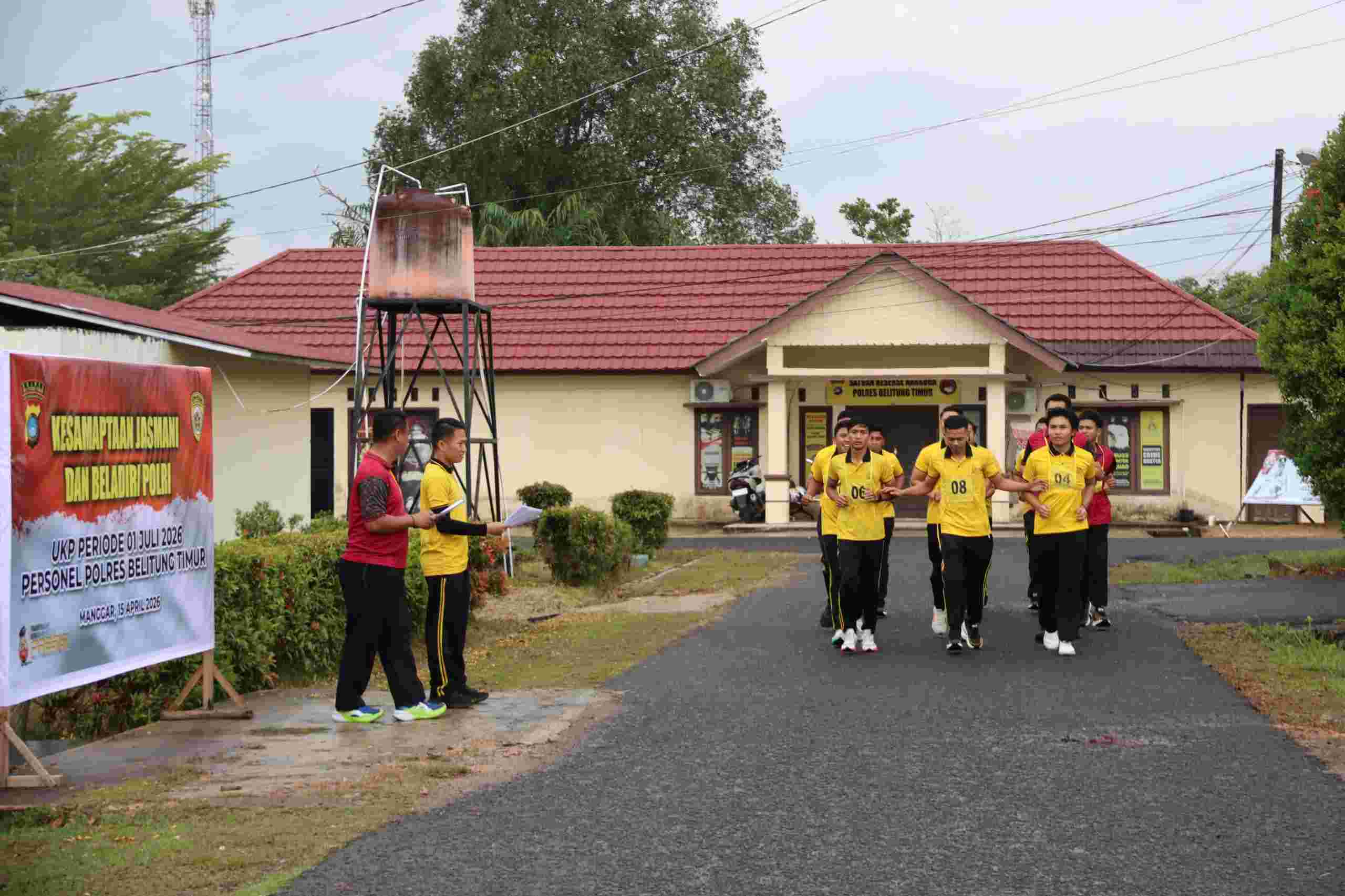 Polres Belitung Timur – Hubungan Masyarakat, Manggar. Dalam rangka memelihara kesiapan fisik dan profesionalisme personel, Polres Belitung Timur menggelar Pelaksanaan Kesamaptaan Jasmani dan Ujian Bela Diri Polri bagi personel yang masuk dalam daftar Usulan Kenaikan Pangkat (UKP) periode 01 Juli 2026, pada Rabu (15/04/2026).