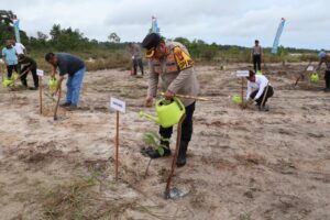 Polres Belitung Timur – Hubungan Masyarakat, Gantung. Kepolisian Resor (Polres) Belitung Timur menunjukkan komitmen nyata terhadap pemulihan lingkungan dengan menggelar kegiatan penanaman pohon serentak pada Selasa (30/12/2025).