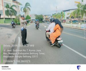 AKP Laury Tessalonica Lawdia, S.Tr.K., S.I.K. selaku Kasat Lantas Polres Belitung Timur seizin Kapolres Belitung Timur AKBP Indra Feri Dalimunthe, S.H., S.I.K., M.H., M.M. saat dijumpai mengatakan, “Pagi ini kita bersama personel Sat Lantas Polres Belitung Timur melaksanakan pengaturan arus lalu lintas di titik keramaian dan sekolah-sekolah. Kami membantu penyebarangan masyarakat dan siswa-siswi yang hendak bersekolah pagi ini.”