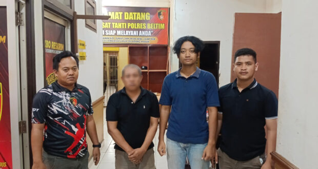 “Personil Polres Beltim yang menerima informasi tersebut langsung melaporkannya ke KBO Sat Reskrim Polres Beltim, kemudian KBO Reskrim Polres Beltim tersebut mengutus tim untuk memastikan informasi dan menjemput pelaku,” ungkap AKBP Indra